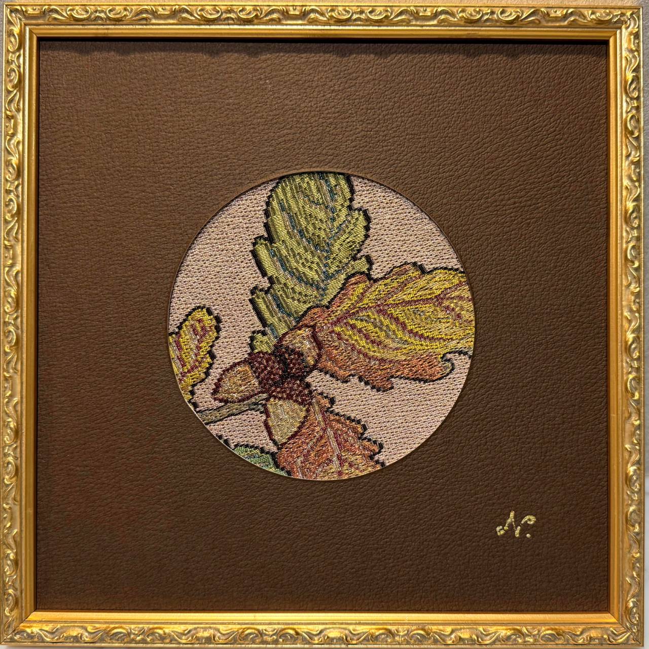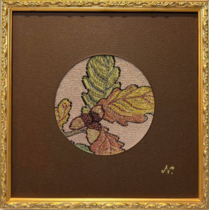 いつか誰かに思いが届く。そんな気持ちを込めて秋色でOak(樫)を刺しました。